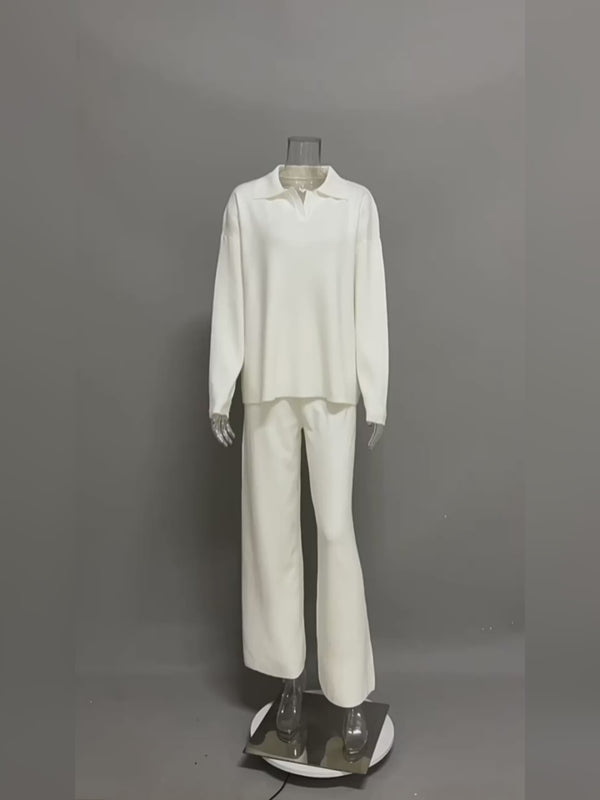 Casual Collared Top and Bottom Set