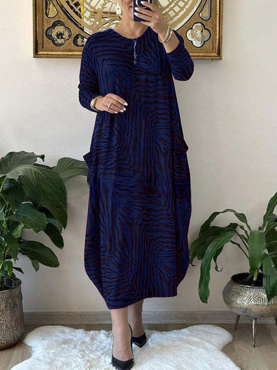 Custom-Printed Crew Neck Long-Sleeve Dress