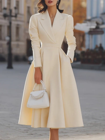 Chic V-Neck Waist-Defined Long-Sleeve Dress