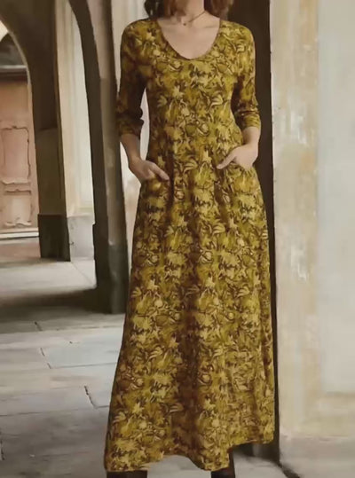 Elegant Animal-Print Classic Long-Sleeve Dress