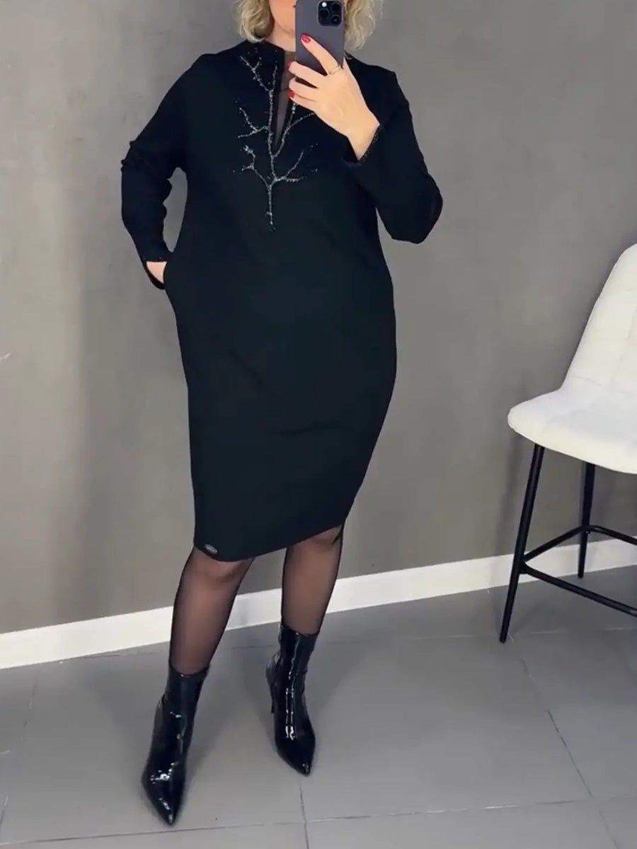 Redefine elegance with this premium midi dress, where meticulously printed cuffs and collar create an instantly recognizable design signature. The sophisticated silhouette flows gracefully to midi length, flattering every frame while maintaining an air of refined restraint. Practical side pockets offer unexpected functionality—a detail that separates truly thoughtful design from mere aesthetics. Crafted for the modern woman who refuses to compromise between style and substance, this dress transitions effortlessly from evening events to upscale daytime occasions. The distinctive printed accents elevate a timeless shape into a contemporary statement piece that speaks to your discerning taste and appreciation for premium craftsmanship.
