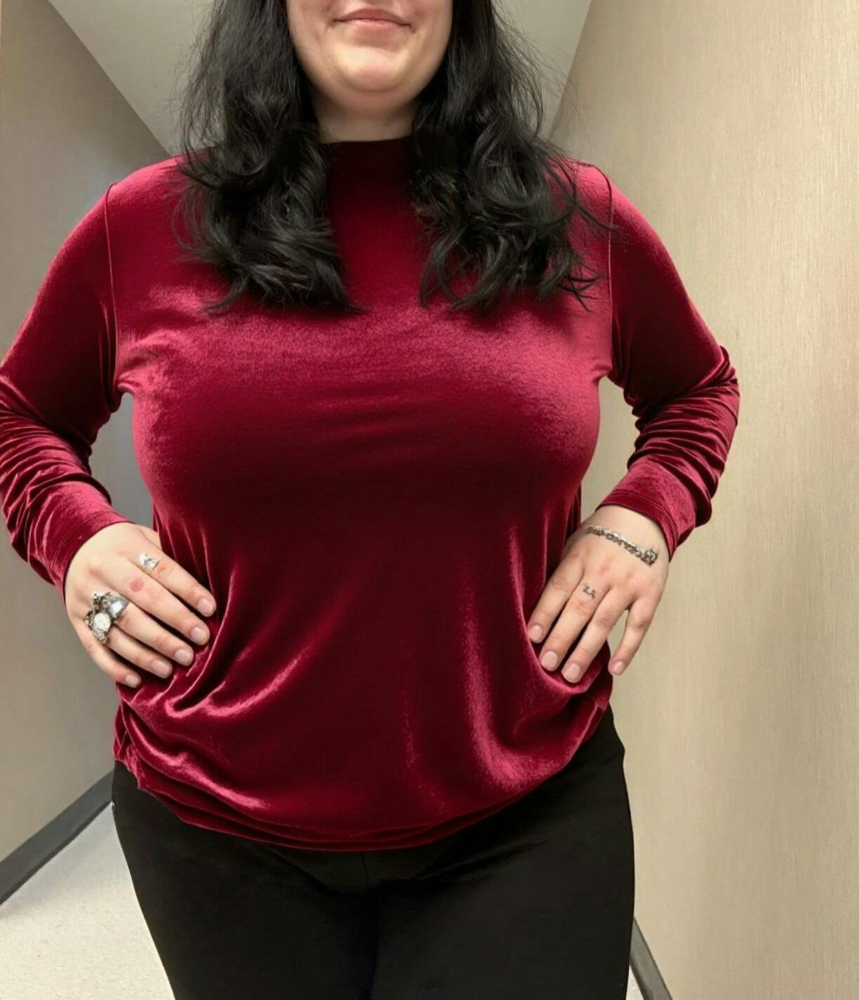 Elevate your holiday wardrobe with this luxurious velvet long-sleeve top, featuring a sophisticated half-high neck design that strikes the perfect balance between elegance and comfort. The rich, soft velvet fabric drapes beautifully while providing warmth for festive gatherings and seasonal celebrations. Perfect for pairing with your favorite bottoms, this versatile piece transitions seamlessly from casual holiday parties to more formal occasions. The refined neckline adds a touch of understated glamour, making it an essential addition to your Christmas collection that you'll reach for year after year.