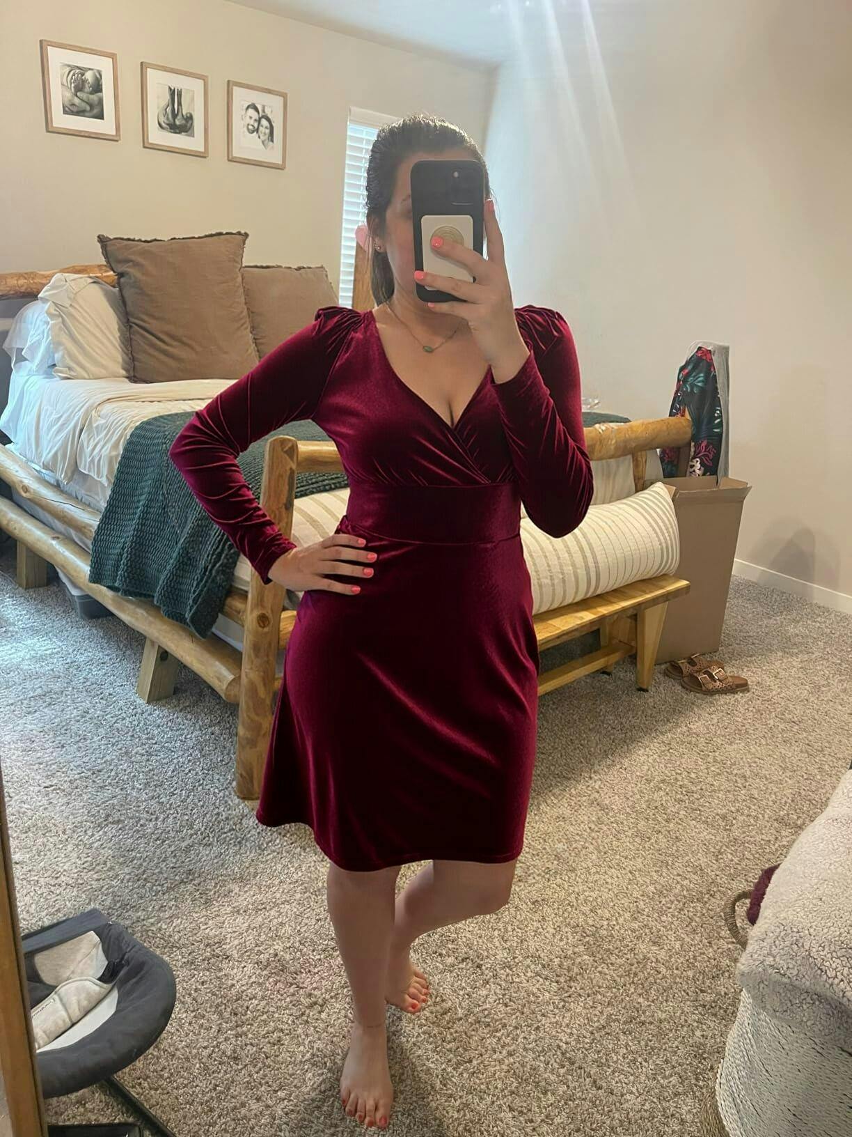 I wore this to my in‑laws’ holiday dinner — layered it with tights and boots. The dress is comfy enough that I forgot I was wearing something “fancy,” but the velvet made me feel festive.