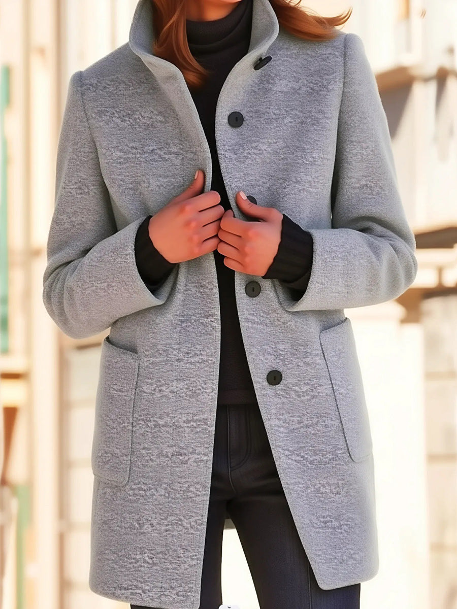 This woman's high-collar coat offers a straight, flattering fit and a modern collar that shields against wind. It stays comfortable and durable over time. It includes handy road pockets and a classic design in elegant colors.